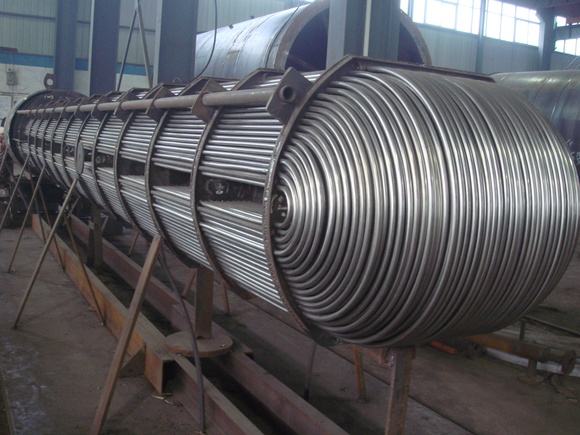 El intercambiador de calor de la cáscara y el tubo está compuesto por la cáscara, el haz de tubo de transferencia de calor, la lámina del tubo, la placa de deflectación (placa de deflectación) y la caja del tubo. La carcasa es principalmente cilíndrica, y se instala un paquete de tubo en el interior, y los dos extremos del paquete de tubos se fijan en la placa del tubo.