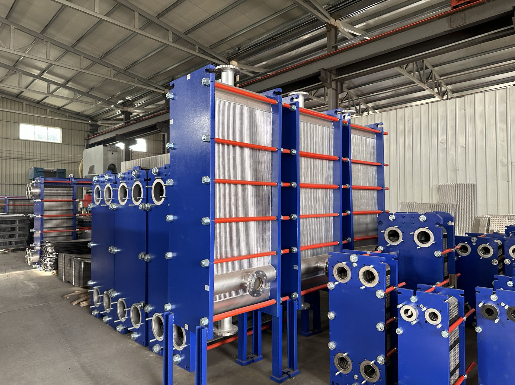 Placas de intercambio de calor: Como componentes centrales de transferencia de calor, están estampados y formados a partir de materiales metálicos resistentes a la corrosión, como acero inoxidable, aleación de titanio y Hastelloy. La superficie está diseñada con patrones especiales como espiga y corrugado, lo que aumenta en gran medida el área de transferencia de calor, mejora la alteración del fluido, mejora la eficiencia de la transferencia de calor y reduce la incrustación y la acumulación.